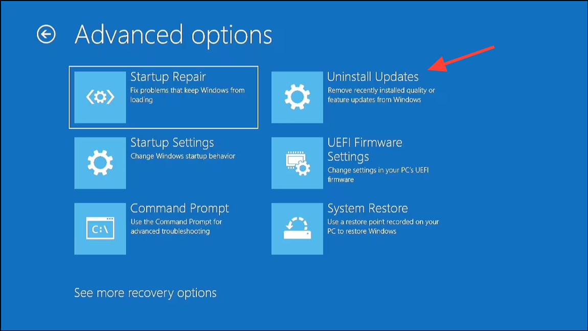 Step 1: Windows updates occasionally introduce compatibility issues that result in black screens after shutdown or restart. In Safe Mode or from the WinRE Advanced options menu, choose Uninstall Updates.