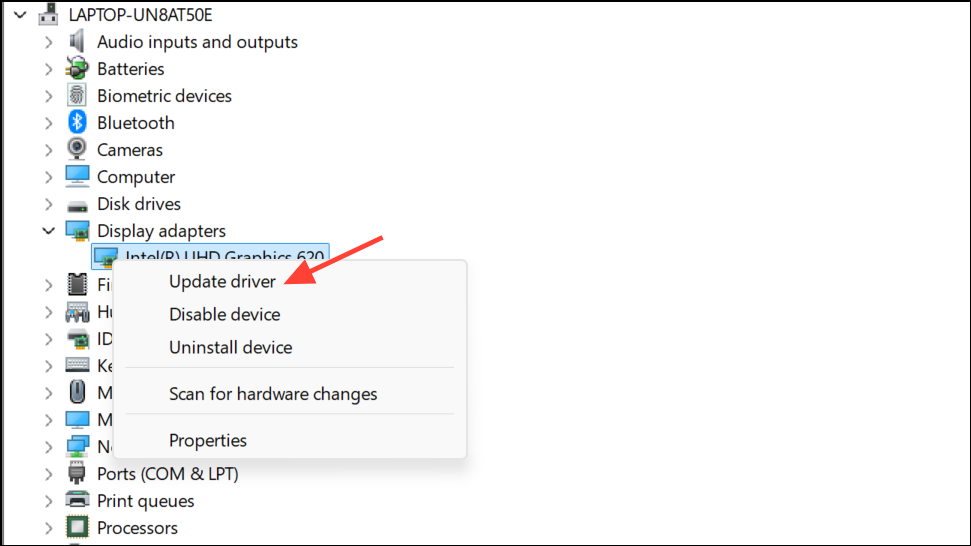 Step 2: Expand the "Display adapters" section, right-click your graphics device, and select Update driver to search for the latest version.