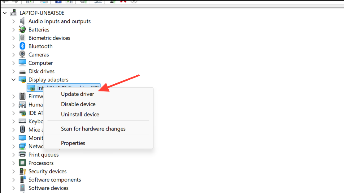 Step 2: Expand the Display adapters section, right-click your NVIDIA graphics card, and choose Update driver.