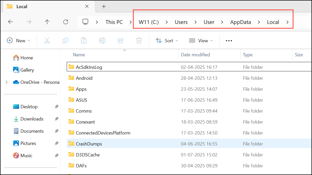 Step 2: Navigate to C:\Users\[YourUsername]\AppData\Local and locate any files named IconCache.db or similar (such as IconCache with a "DataBase File" type).