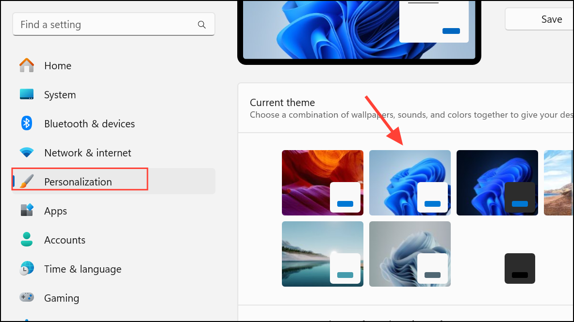 Step 1: Open Settings, go to "Personalization" > "Themes", and switch to a default Windows theme.