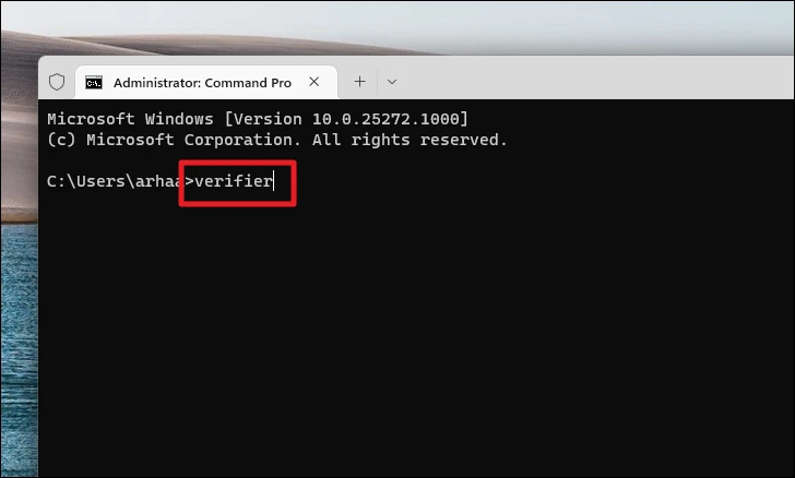 Step 2: In the Terminal, type verifier and press Enter to open the Driver Verifier Manager.