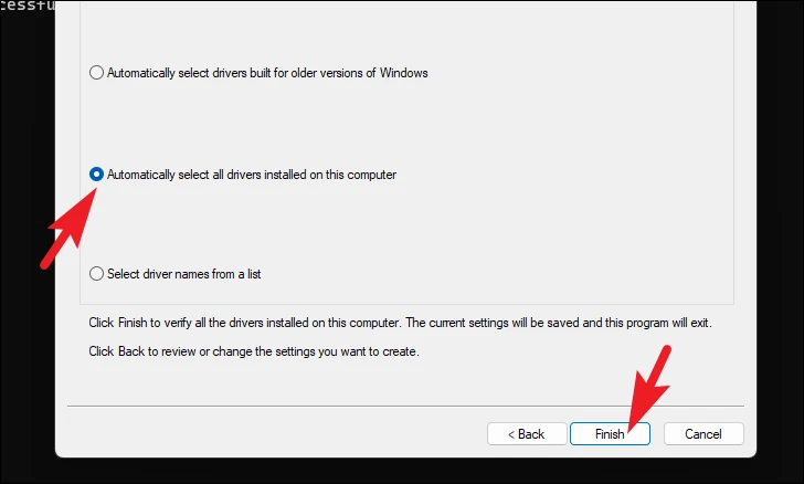 Step 4: Select Automatically select all drivers installed on this computer and click Finish.