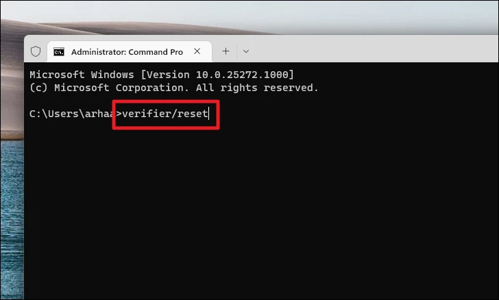 Step 7: After identifying and resolving driver issues, stop the Driver Verifier by typing the following command in the Terminal: