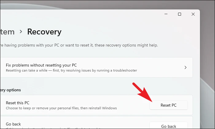 Step 3: Click on Reset PC under Reset this PC.