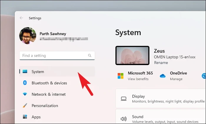 Step 2: Navigate to System on the left sidebar and select Recovery on the right.