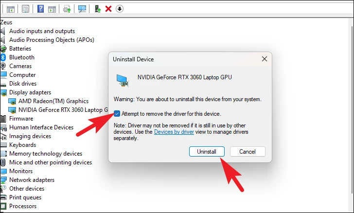 Step 10: Check the box for Attempt to remove the driver for this device and click Uninstall. Restart your PC and reinstall the driver via Windows Update or the manufacturer's website.