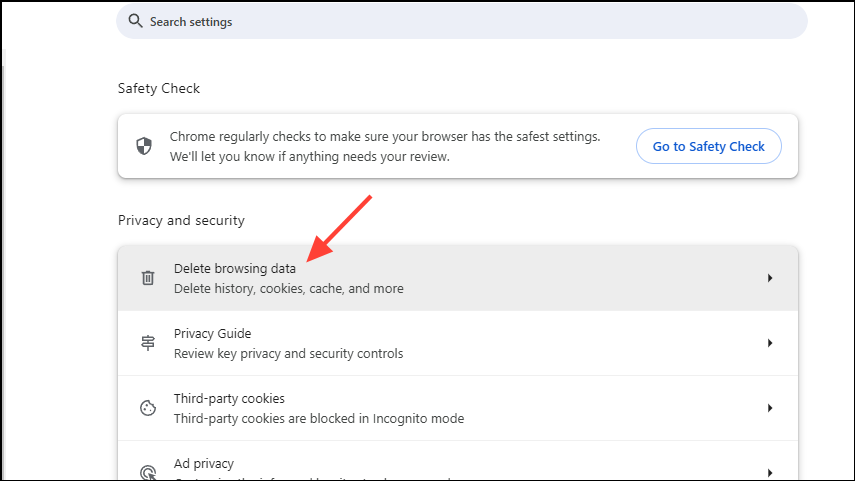 - Next, click on the 'Delete browsing data' option.