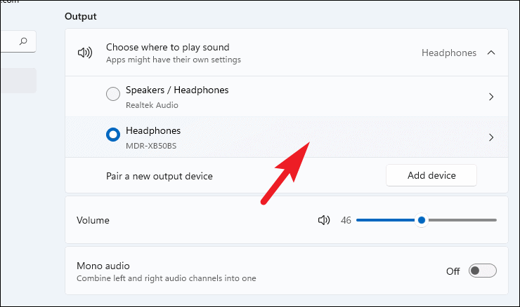 - Under the Output section, click on your Bluetooth audio device to open its properties.