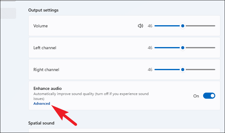 - Scroll down to the Enhance audio section and click on the Advanced button.