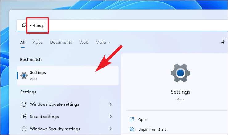 Settingsapp by clicking on the Start Menu and selecting the gear icon, or by typingSettingsinto the search bar.