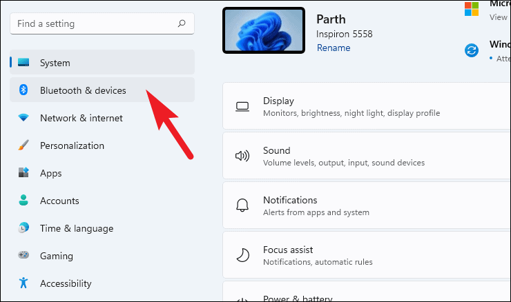 - Click on the Bluetooth & devices tab on the left sidebar.