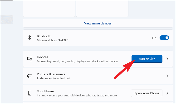 - On the right pane, you'll see your connected devices. If you don't see your Bluetooth device, click on View more devices.