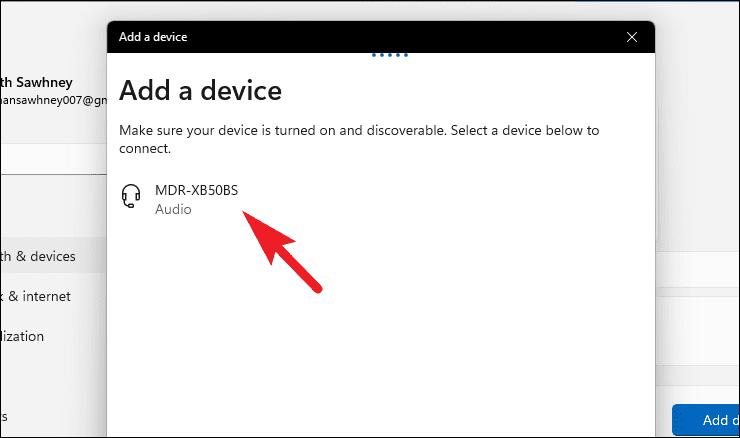 - To reconnect the device, return to the Bluetooth & devices screen and click on Add device.