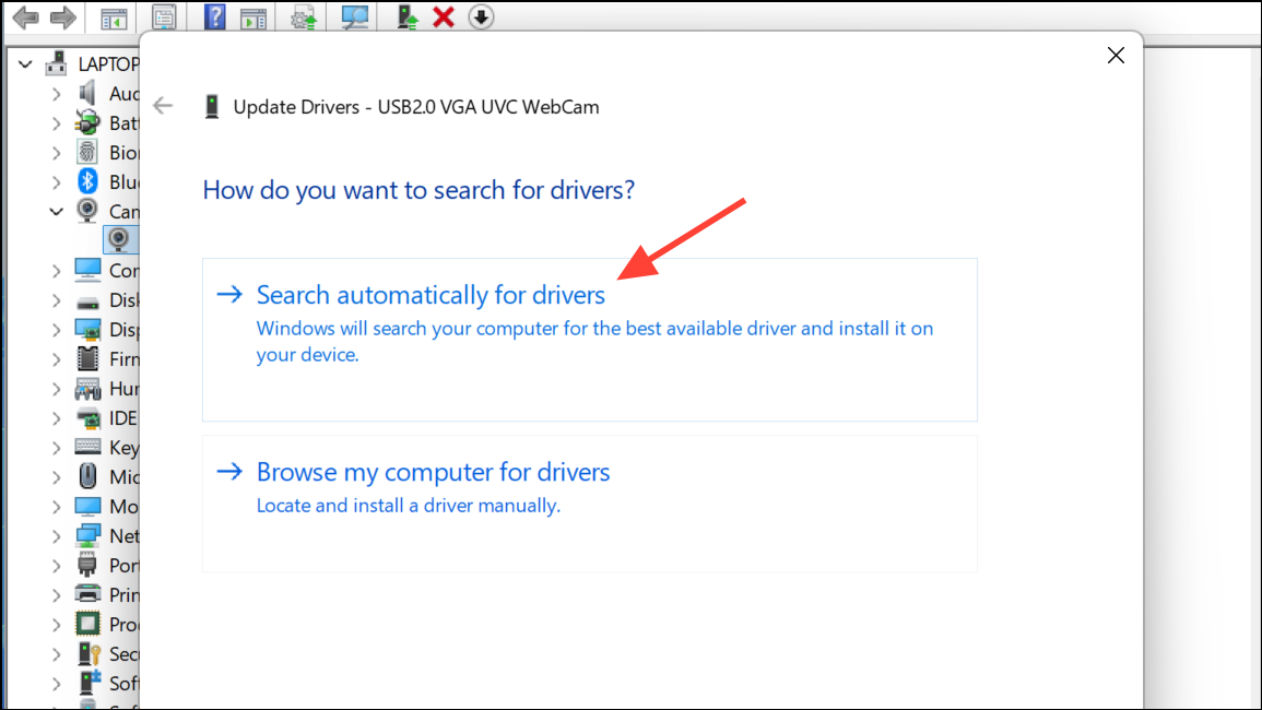 Step 3: Right-click your camera device and choose Update driver. Select Search automatically for drivers to allow Windows to find and install the latest compatible driver.