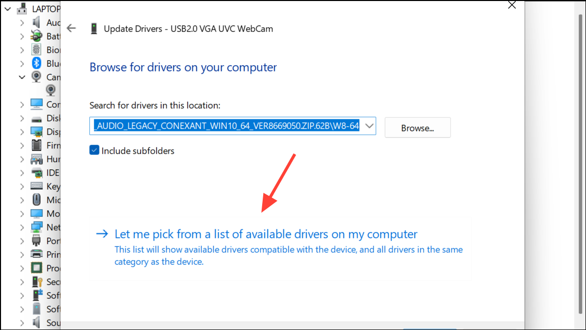 Step 5: If the problem continues, repeat the process, but this time select Update driver > Browse my computer for drivers > Let me pick from a list of available drivers on my computer.