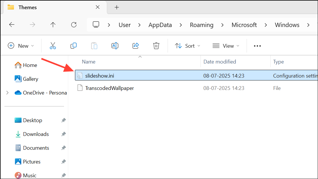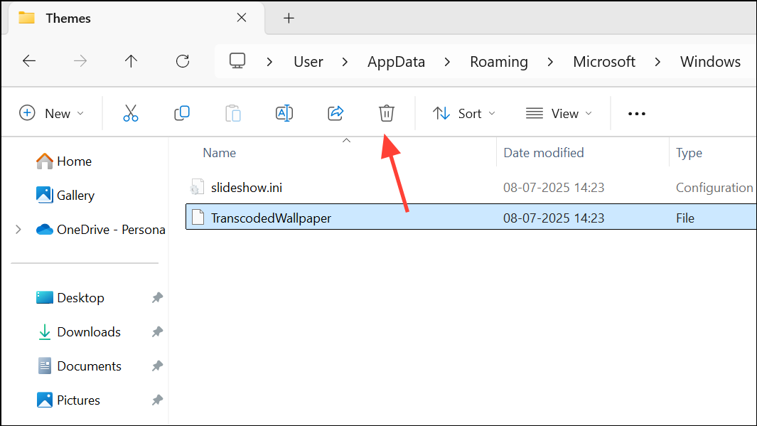 Step 2: Locate the file named TranscodedWallpaper. Right-click and either delete it or rename it to something like TranscodedWallpaper.bak. This step removes any corrupted cache that may prevent your wallpaper from updating.