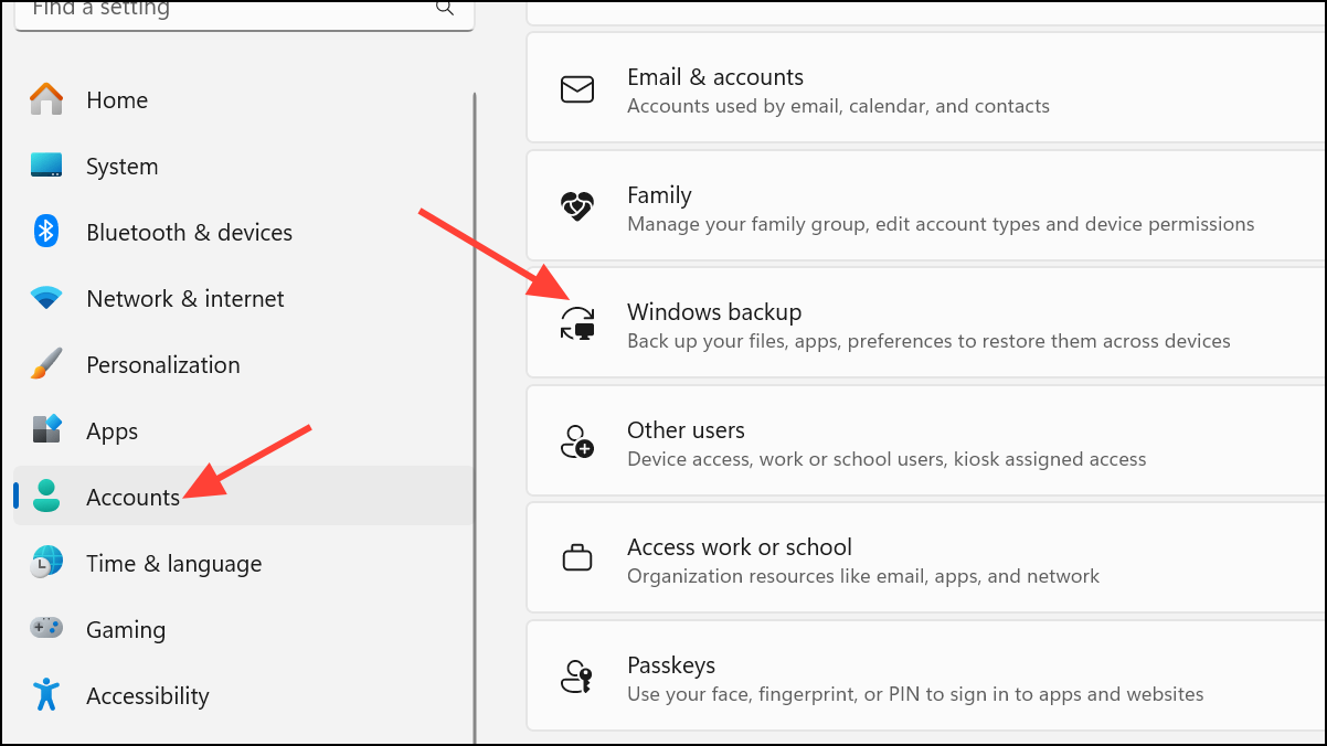 Step 2: If your wallpaper keeps reverting or syncing incorrectly, open Settings > Accounts > Windows backup and turn off “Remember my preferences.” This prevents Windows from syncing wallpaper settings across multiple devices linked to your Microsoft account.