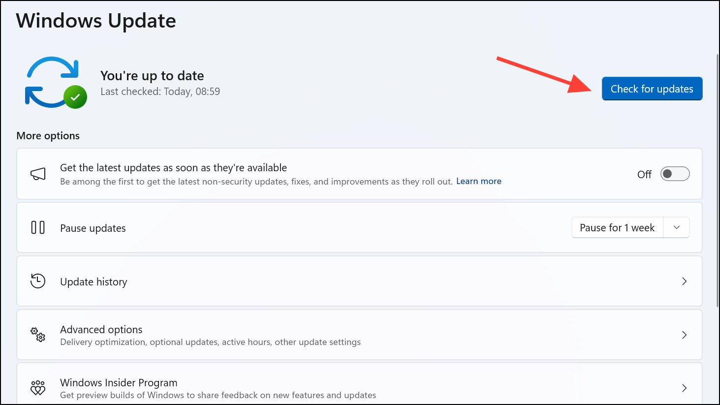 Step 2: Click the "Check for updates" button. Windows will search for available updates. If updates are available, click "Download and install" to apply them.