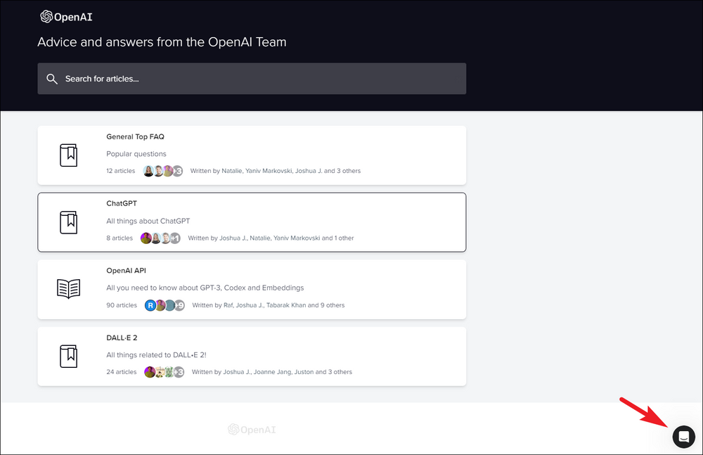 To contact OpenAI support, head to help.openai.com using your preferred browser. Then, click the floating icon at the bottom left corner to proceed.