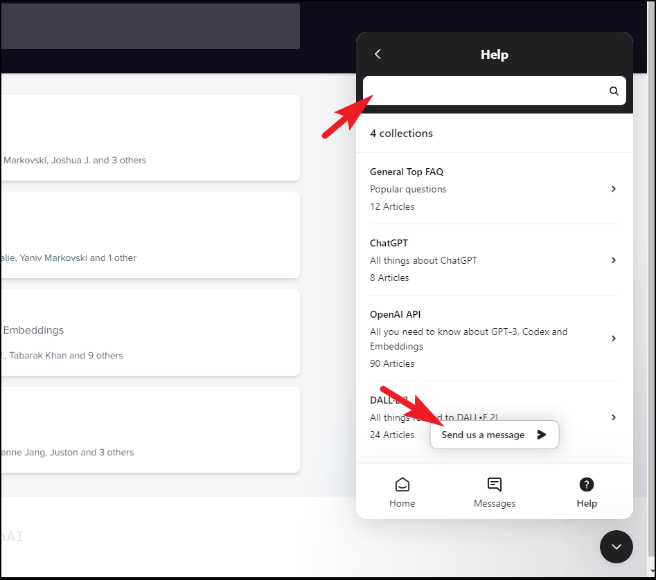 Next, you can search for the problem you're facing or send the team a message.