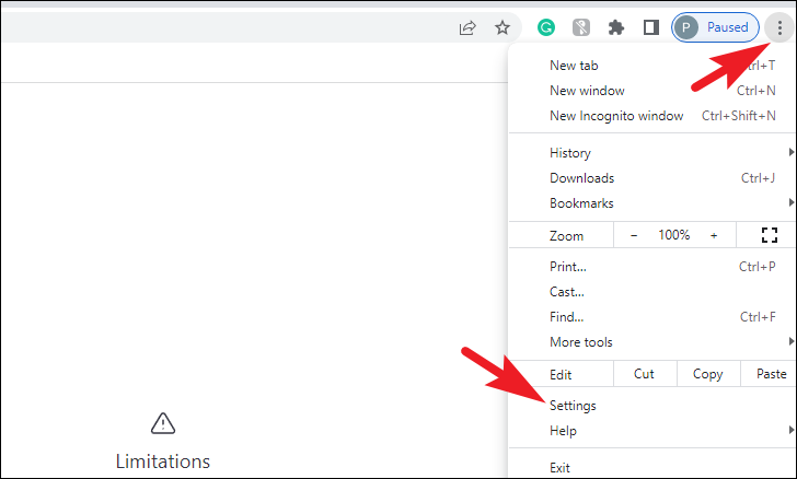 You can also clear cookies from the Settings menu, click on the 'Kebab/ Hamburger' menu and then select the 'Settings' option.