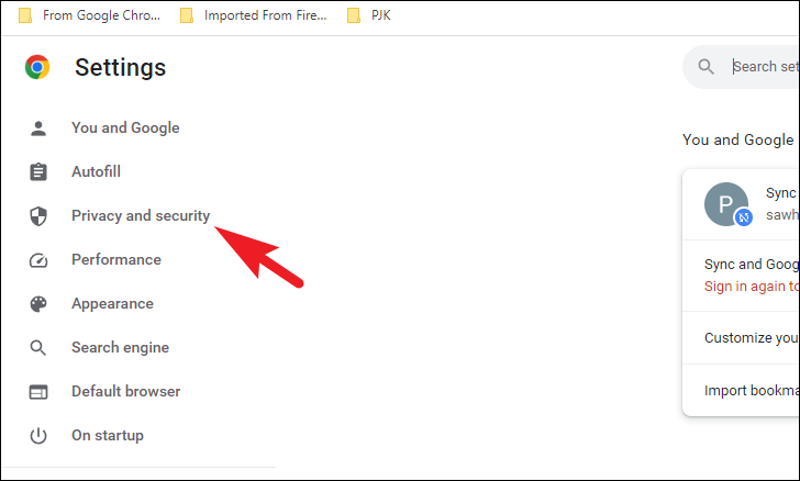 Afterward, click on the 'Privacy & security' option from the left sidebar.