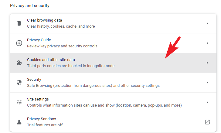 Next, click on the 'Cookies and other site data' tile to proceed.