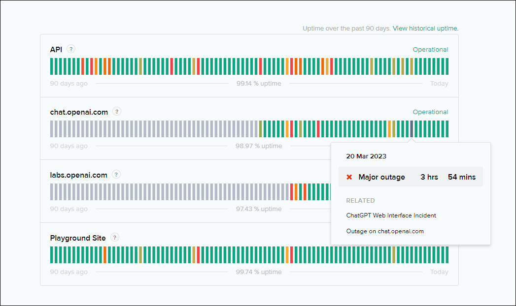 If the above method didn't resolve the issue, you should check that there's no problem with the ChatGPT servers. To check, simply head to the OpenAI status page and check if there's been any outage of service that day.
