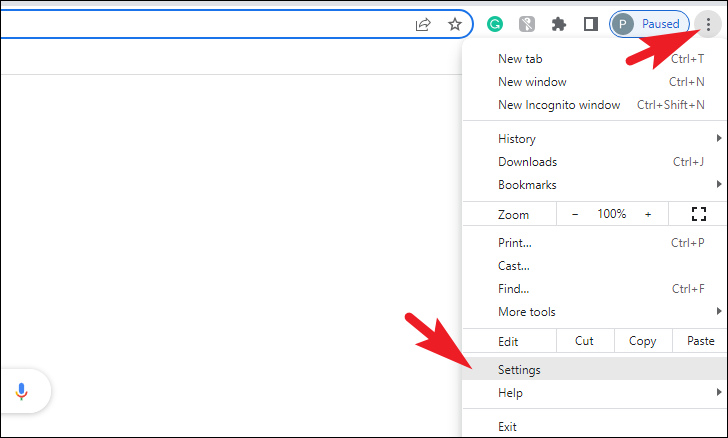Now, from the Chrome home screen, click on the 'ellipsis' icon and then select the 'Settings' option.