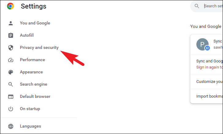After that, click on the 'Privacy & security' tab from the left sidebar.