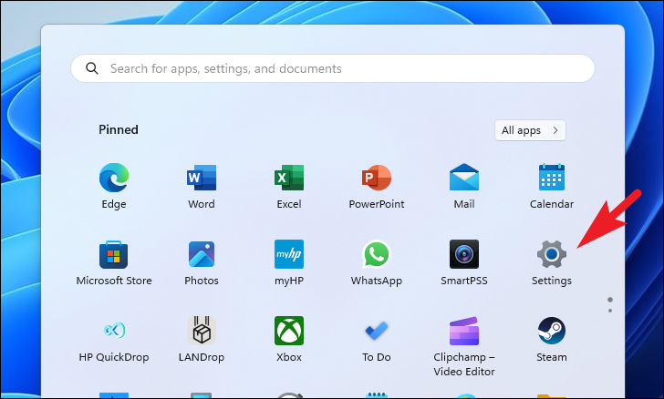 First, head to the Start Menu and click on the 'Settings' tile icon.