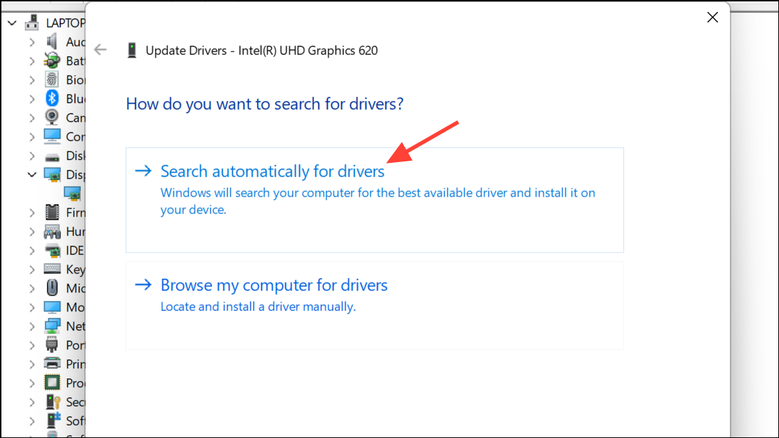 Step 3: Choose Search automatically for drivers. Allow Windows to find and install the latest version.
