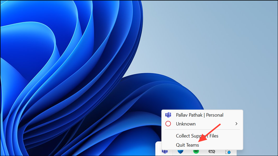 Step 1: Fully quit Teams (right-click the Teams icon in the system tray and select Quit).