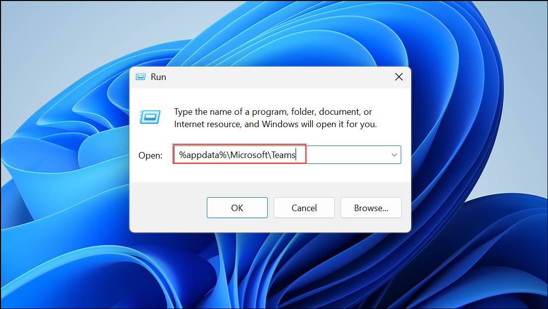 Step 2: Press Win + R, paste %appdata%\Microsoft\Teams, and press Enter.
