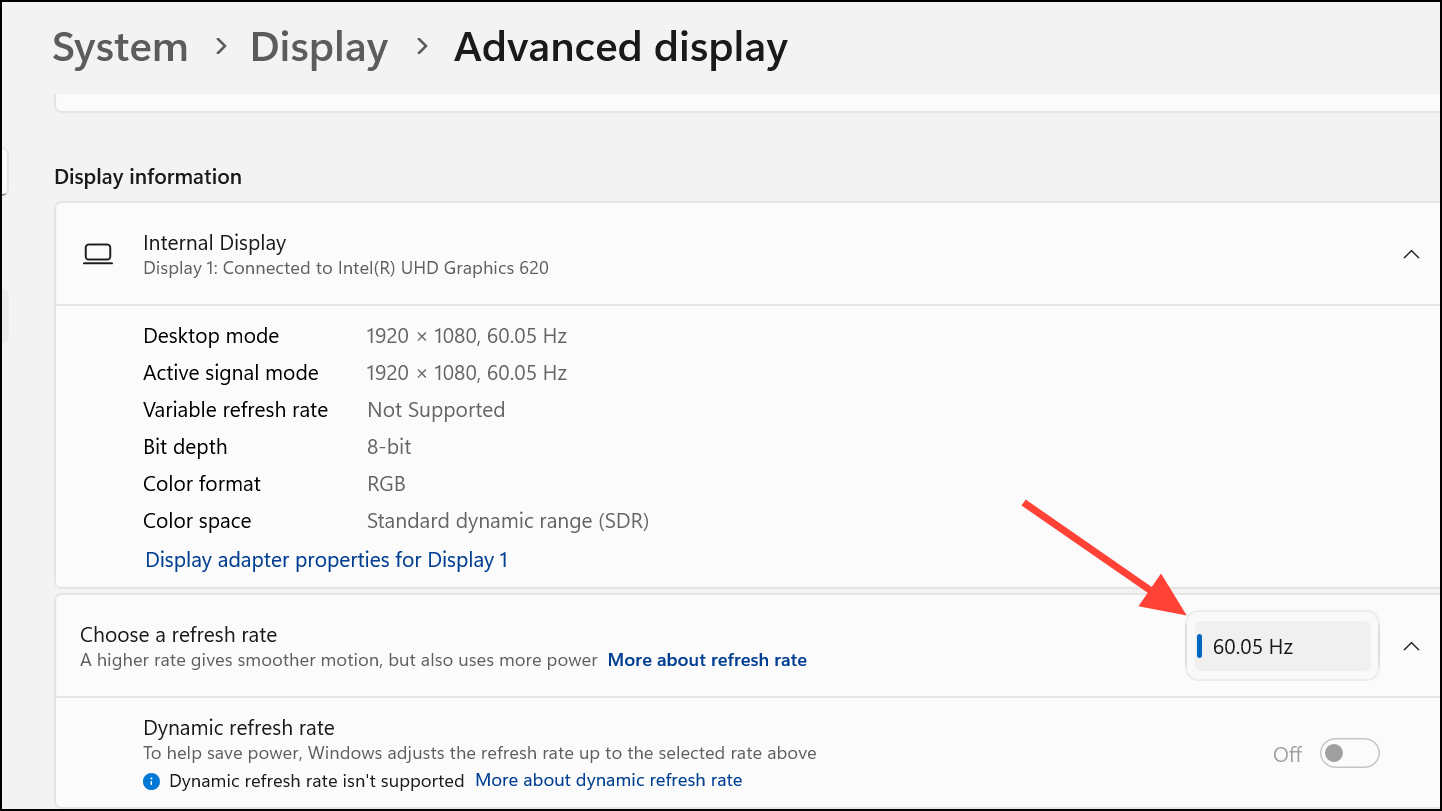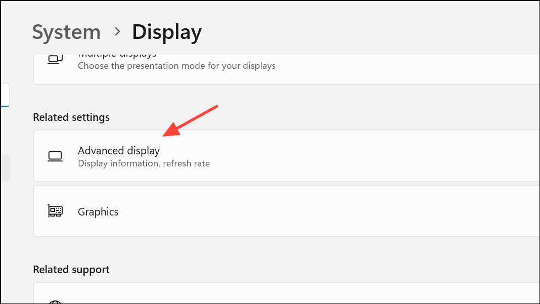Step 2: Scroll to Advanced display settings, then select your main display.