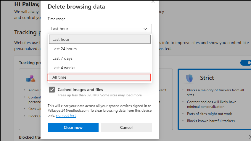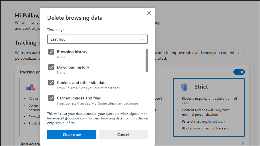 Corrupted cache or cookies can interfere with how Copilot operates. Clearing them may resolve the issue.