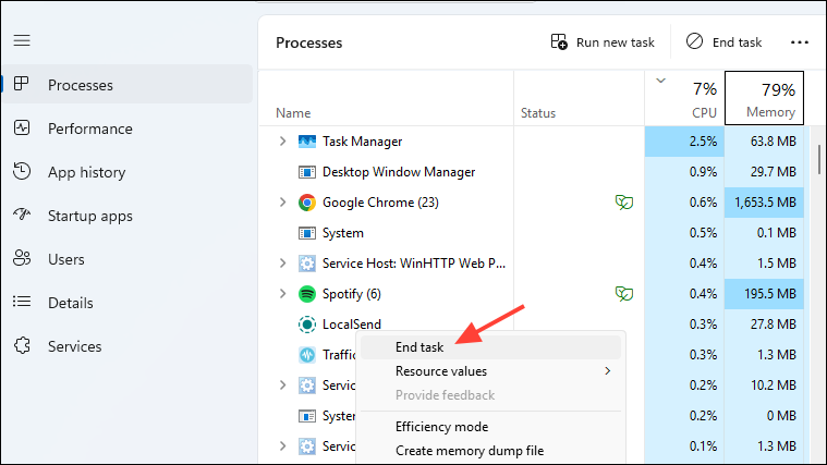 Step 2: Identify any non-essential processes or apps consuming significant CPU resources. Right-click these tasks and select "End Task" to stop them from running. Avoid terminating critical system processes, as this could lead to instability.