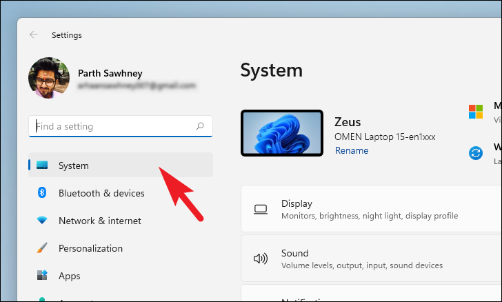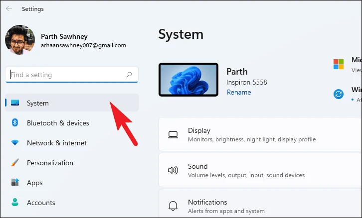 Step 2: In Settings, select the System tab from the left sidebar.