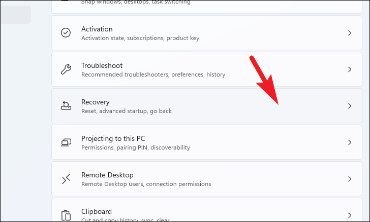 Step 3: Scroll down and click on Recovery.