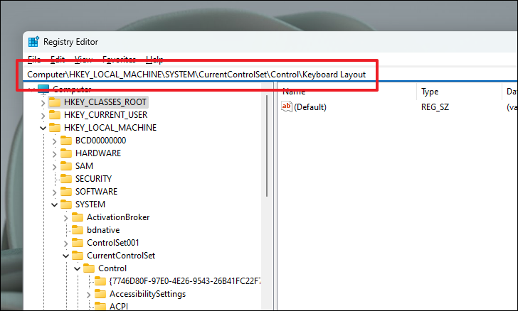 Computer\HKEY_LOCAL_MACHINE\SYSTEM\CurrentControlSet\Control\Keyboard Layout