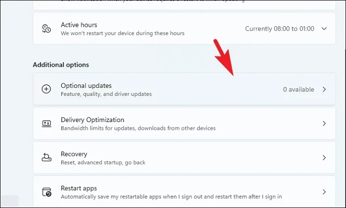 Step 4: Under the Additional options section, click on Optional updates.