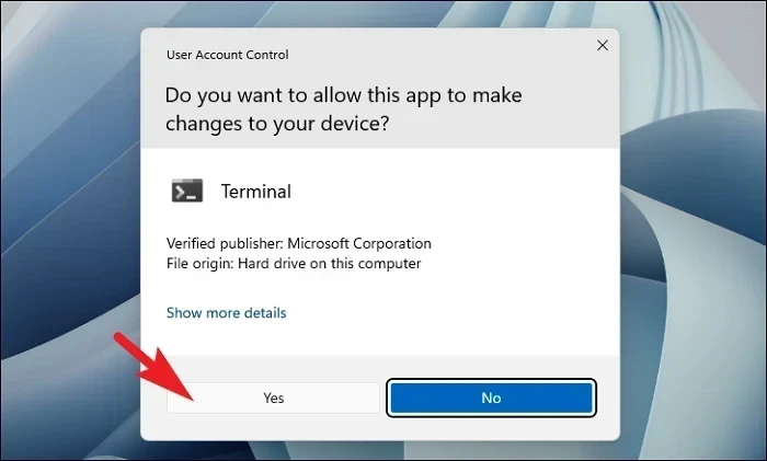 Step 2: If prompted by UAC, click Yes.