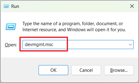Step 1: Open Device Manager by pressing Windows + R, typing devmgmt.msc, and pressing Enter.