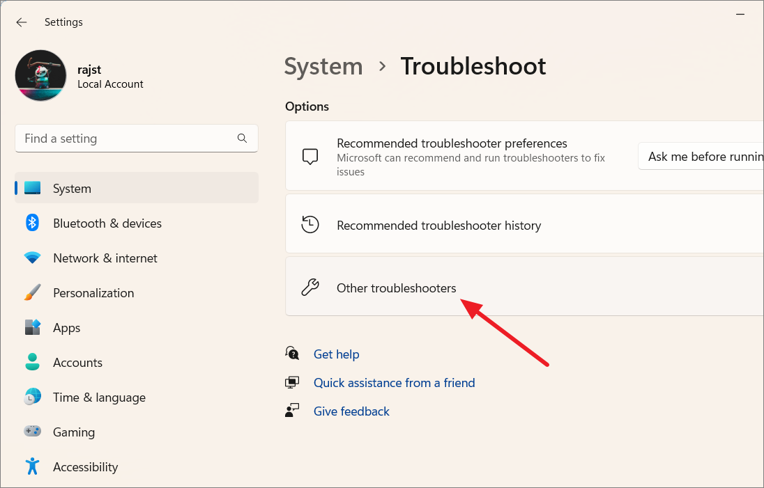 Step 2: In the System tab, scroll down and click on Troubleshoot.