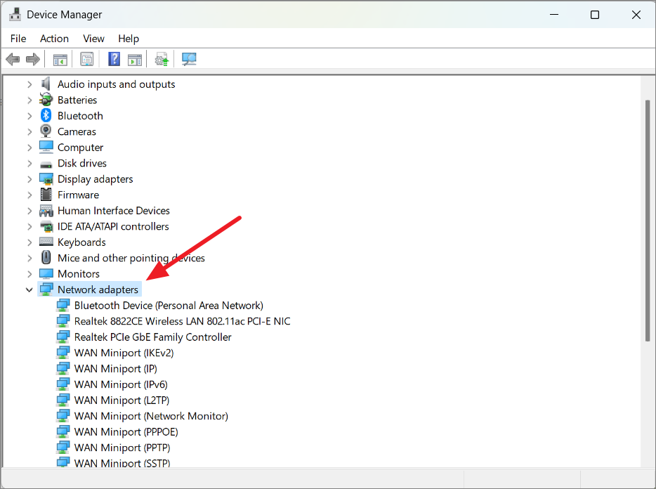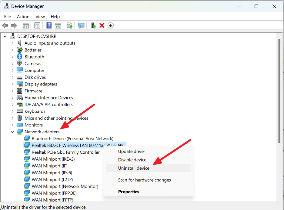 Step 2: Expand Network adapters, right-click on your wireless adapter, and select Uninstall device.