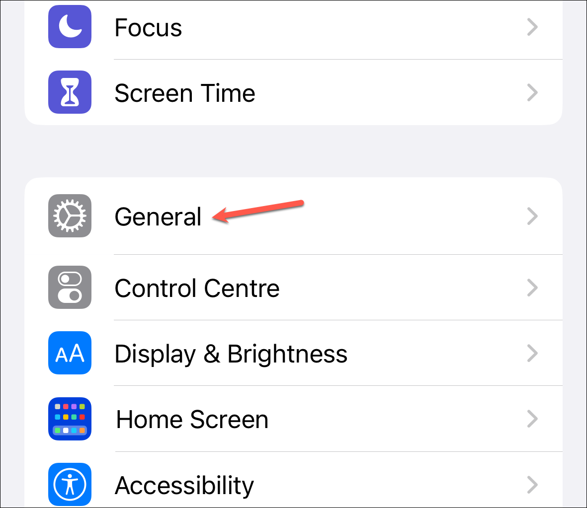Go to 'General' in the Settings app.