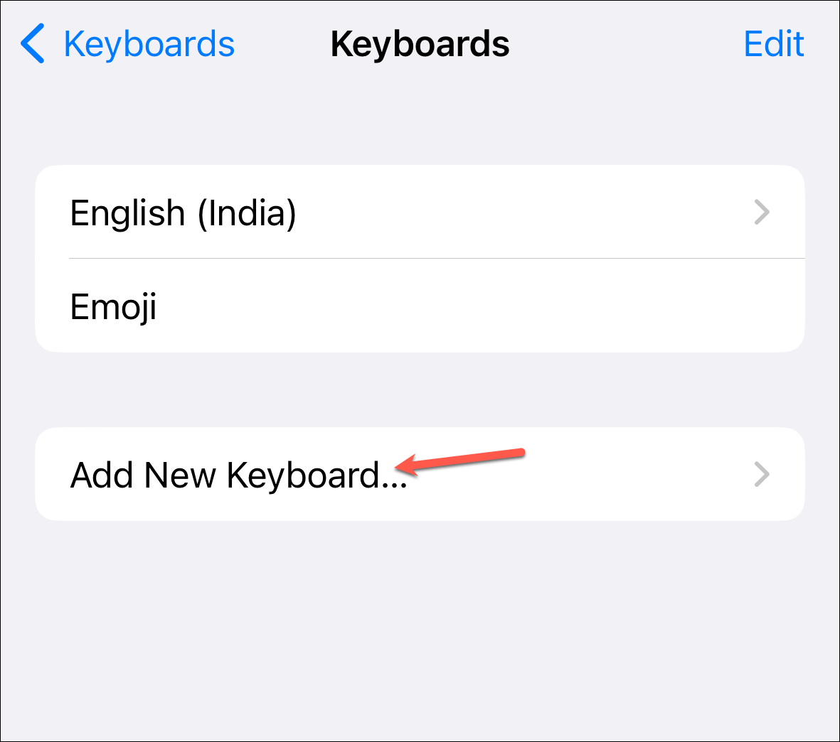 Finally, tap 'Add New Keyboard'.