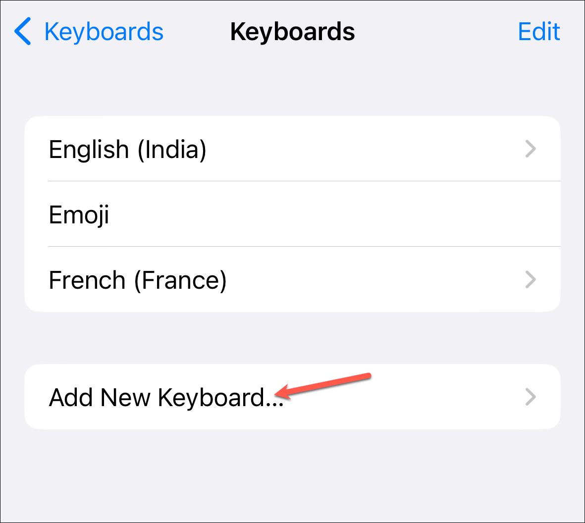 Next, tap 'Add New Keyboard'.
