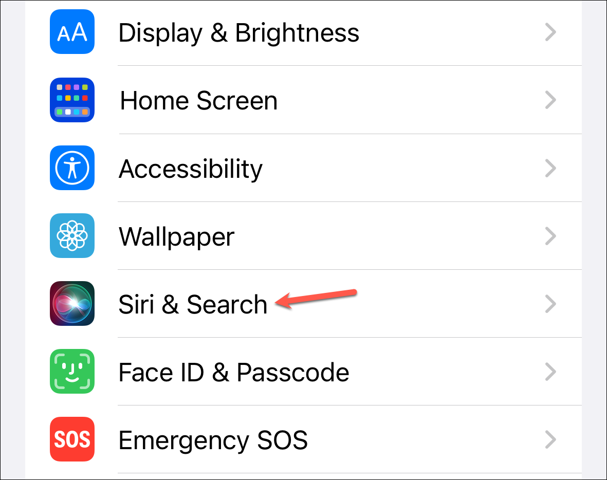 Now, go back to Settings and tap 'Siri & Search'.